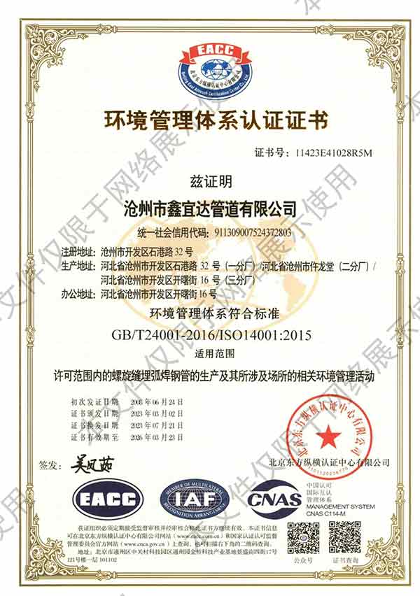 滄州市鑫宜達(dá)管道有限公司成立于2003年7月,坐落于滄州經(jīng)濟(jì)開(kāi)發(fā)區(qū),占地面積40萬(wàn)平方米,注冊(cè)資金1.81億元,是集螺旋鋼管生產(chǎn)、防腐加工以及無(wú)縫鋼管、卷板、帶鋼等品類鋼材經(jīng)營(yíng)銷售于一體的工貿(mào)型企業(yè)。公司現(xiàn)有員工400多人,其中,中高級(jí)技術(shù)職稱的人員達(dá)120余名。 滄州市鑫宜達(dá)管道有限公司擁有9條螺旋鋼管生產(chǎn)線和3PE防腐生產(chǎn)線,可生產(chǎn)直徑219--3640mm,壁厚5.5--28mm,最高鋼級(jí)X100的各種規(guī)格防腐螺旋鋼管...